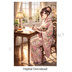 朝の光の中で手紙を書く着物の女性|デジタルアート