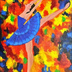 A powerful acrylic painting by Mary G titled "Rhythms of Fire." The artwork portrays a ballerina in a brilliant blue tutu, captured in a dynamic leap. The background is an explosion of fiery red, orange, and yellow strokes, beautifully contrasting with the dancer's poise and representing the intense heat and passion of movement. ===================================================== Mary Gによる「Rhythms of Fire(炎のリズム)」と題された力強いアクリル画。鮮やかな青いチュチュを身にまとったバレリーナが、ダイナミックに跳躍する瞬間を捉えています。背景は燃えるような赤、オレンジ、黄色のブラシストロークが爆発し、ダンサーの落ち着きと美しく対照をなし、動きの激しい熱情を表現しています。