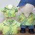 15cm〜ぬいぐるみサイズ ライトグリーンにミモザのセーラーカラーシャツ ハンドメイド お洋服