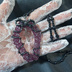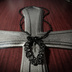 棺に捧げられた薔薇のリースを模したネックレス。 途切れることのない円環は、 終わりではなく、 始まりへと繋がる永遠の象徴。 常緑の代わりに絡みつくのは、 冷たい銀のいばら。 揺れる十字架は常しえの祈り。 生と死は常に隣り合わせ—— その儚くも気高い真理を宿した、 メメント・モリの美学。 •┈┈┈••✦☪︎✦••┈┈┈• 原型からオリジナルで制作し、 ひとつひとつハンドメイドで仕上げています。 手作業で型抜きを行っているため、 いばらの欠け方や薔薇の形にはそれぞれ個性があり、 一点ごとにわずかに異なる表情をお楽しみいただけます。 また、いばらの棘は鋭利にならないよう加工していますが、 繊細なレースやチュールのお洋服には引っかかる可能性がありますので、 ご着用の際はご注意ください。 ロリィタ・ゴシック・クラシカルな装いに、 静かな退廃の気配を添えるアクセサリーです。 金具素材: サージカルステンレス(※中央の十字架パーツは対象外) ※すべての方に金属アレルギーが出ないことを保証するものではありません。