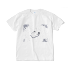 Tシャツ(短納期) - XL - ホワイトおえかきヒヨコの春 (片面②) こちらは寝そべっているおえかきヒヨコデザインになります。 この商品はpixivFACTORYで作られた商品です。サンプル画像は完成イメージのため、実物と異なる場合があります。