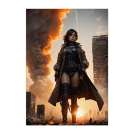 ポスター - B2この商品はpixivFACTORYで作られた商品です。サンプル画像は完成イメージのため、実物と異なる場合があります。 巨大な煙が立ち上る崩壊都市を背景に、 堂々と歩くサバイバーヒロイン。 夕日の光が瓦礫の街を照らし、 壮大なスケールの終末世界を 映画のポスターのように描き出します。 ポストアポカリプスの世界観を 力強く表現したシネマティック作品です。