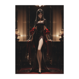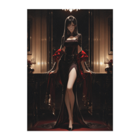 ポスター - B2この商品はpixivFACTORYで作られた商品です。サンプル画像は完成イメージのため、実物と異なる場合があります。 黒と深紅のドレスをまとった女性が、クラシックな室内空間に佇む幻想的なポスター作品です。 シャンデリアの灯りが繊細に反射し、ゴシック調の雰囲気とラグジュアリーなファッションが美しく融合しています。 重厚感のある色彩と優雅な佇まいが印象的な、大人の雰囲気を感じさせるアートポスターです。