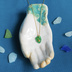 海で拾い集めたシーグラスを使用したネックレスです。 波に磨かれて生まれた自然の形をそのまま活かし、 穴あけ加工を行ったシーグラスに、Skyの壁画をイメージした模様を一点ずつ手描きしています。 同じ形や色は二つとない、世界にひとつだけのアクセサリー。 Skyの世界をさりげなく身につけられるアクセサリーです。 シーグラスは天然素材のため、小さな傷や風合いがあります。自然素材ならではの個性としてお楽しみください。 小さな貝殻のケースに入れてお届けします。 ◎チェーン45cm+アジャスター5cm ※注意事項 ・チェーン、マルカンは全て金属アレルギー対応品を使用しています。(316Lサージカルステンレス) 全ての方にアレルギーが出ないとは限りません。万が一アレルギー反応が出た場合は、直ちに使用を中止してください。 ・ペンダントトップはガラス製ですので、強い力を加えない様ご使用ください。 ・模様は耐水性のあるもので手書きしていますが、強く擦ったり、鋭いもので力を加えると塗料が剥がれる可能性があります。ご注意ください。 ・シーグラスは使用前に洗浄消毒をしっかりしておりますが、気になる方はご購入をご遠慮ください。