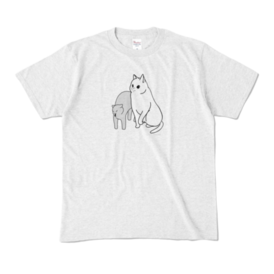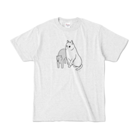 カラーTシャツ - XL - アッシュ (淡色)猫とびっくり猫のぬいぐるみのTシャツです。 この商品はpixivFACTORYで作られた商品です。サンプル画像は完成イメージのため、実物と異なる場合があります。