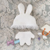 爽やかなホワイトカラーのスムース素材をベースに、パステルカラーのオーガンジーフリルやレース・リボンを使用した、赤ちゃんみたいなお洋服と、うさ耳帽子のセットが登場しました! ①~③いずれも、同系色のおしゃぶりチャームをセットでお付けします。 繊細なレース・オーガンジーフリルやリボンを組合せ、可愛らしさの中に可憐で上品な雰囲気を感じられるデザインに仕上げました。 *サイズについて* 以下のぬいぐるみを元にパターン(型紙)を作り制作しております。 ・頭回りの長さ=およそ22.5㎝ ・頭の先からつま先までの長さ=およそ13㎝ ※こちらのお洋服・帽子はいずれもワンサイズ展開となり、サイズ変更や調整は承りません。ご容赦ください。 参考:一般的に流通しているぬいぐるみでは、きらどるぬい・ちびぐるみ などのぬいぐるみ相当のお人形さん向けのサイズとなります。 ※ご購入者様がお持ちのお人形さんに必ずフィットするという保証はございません。何卒ご容赦ください。 本デザインは資材に限りがあるため、ごく僅かで生産終了となります。ぜひお早めにお手に取ってみてください。