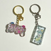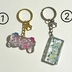 ゲーミングコントローラーのキーホルダーです。 色々なイメージで作りました✨ Vtuberといえばやはりゲーム!コントローラーは光らせなくては!!と蓄光パウダーを使って光らせました☺️ 熊系Vtuberなので今回は肉球チャーム付けました! *サイズ* コントローラー部分 ①約2cm×約4cm 厚さ約8mm ②約2.5cm×約4.5cm 厚さ約8mm *注意点* ・丁寧に作っていますが、どうしても小さな気泡、繊維、傷などが入ってしまいます。未熟で申し訳ございませんがご了承ください。 ・UVレジンを使用していますので経年劣化することがあります。 ・黄変しにくいレジン液を使用しておりますが、直射日光がずっと当たる場所での保管はおすすめ出来ません。 ・蓄光パウダーを使用しております。光り方の偏りがあります。