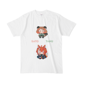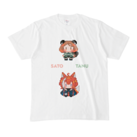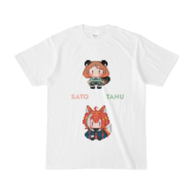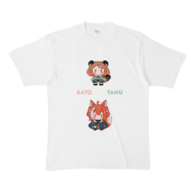 Tシャツ - XL - 白代理キャラのサトちゃんとたぬちゃんのドット絵をTシャツにしてみました! この商品はpixivFACTORYで作られた商品です。サンプル画像は完成イメージのため、実物と異なる場合があります。