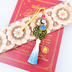 小竜景光モチーフのブックマーカーです。 髪にさしたり、帯にさしたり、本に挟んだりと多用途にお使いいただけます。 モチーフ部分だけで11-12cmと長めですので、タッセルを外してのご注文も可能です。 タッセルなしでのご購入はメッセージにて受け付けしておりますのでよろしくお願いします。 水引、廃盤のスワロフスキー、ホタルガラス、手染めのタッセル等を使用しております。 水引は曼荼羅結びになっており、コーティング剤を塗布してあります。 多少形崩れや水濡れに強くはなりますが、防水効果が高い訳ではありませんので雨などにはお気をつけください。 こちらは簡易梱包になります。 プレゼント梱包をご希望の場合はプレゼント梱包を作品と同時にご購入頂きますようよろしくお願いします。