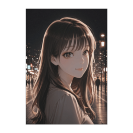 ポスター - B2この商品はpixivFACTORYで作られた商品です。サンプル画像は完成イメージのため、実物と異なる場合があります。 きらめく夜の街を背景に、ふと振り向く女性を描いたポスター作品です。 街の灯りとやわらかな表情が重なり、ロマンチックで少しドラマチックな雰囲気を演出しています。 夜の空気感と都市の光が印象的な一枚です。