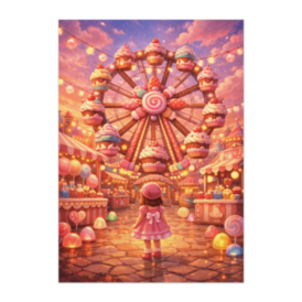 ポスター - B2この商品はpixivFACTORYで作られた商品です。サンプル画像は完成イメージのため、実物と異なる場合があります。 カップケーキでできた観覧車が輝く、甘いカーニバルの夜。 お菓子の屋台と光に包まれた夢のような遊園地を描いたファンタジーポスターです。 温かい光とスイーツの世界が広がる、かわいくて楽しいカーニバルアート。 ポップで幻想的なインテリアポスターとしておすすめです。