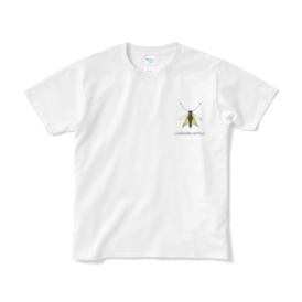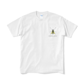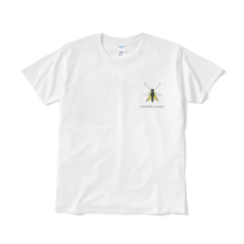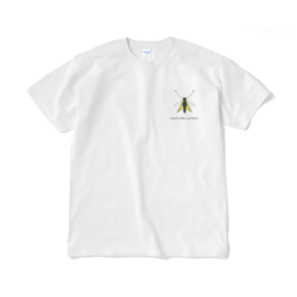 Tシャツ(短納期) - XL - ホワイトキバネツノトンボのワンポイント白Tです。学名が入ってかっこいい感じになってます! この商品はpixivFACTORYで作られた商品です。サンプル画像は完成イメージのため、実物と異なる場合があります。