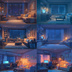 Vtuber配信背景セット|夜のルーム背景 全12種 PNG
