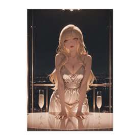 ポスター - B2この商品はpixivFACTORYで作られた商品です。サンプル画像は完成イメージのため、実物と異なる場合があります。 高層階レストランの夜景を背景に、ゴールドのドレスをまとった女性が静かに佇む印象的な一枚。 シャンパングラスの輝きと都会の光が重なり、大人のロマンチックな雰囲気を演出します。 上品で華やかな空間を彩るインテリアアートとして楽しめるポスター作品です。
