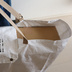タイベックⓇ製のトートバッグです。 かなり大きいです。サイズは画像でご確認ください。 そして持ち手の長さは調節できます。ショルダーでも手持ちでもお好みで。 プラモとみればついつい買ってしまうダメな大人のために作りました。 折り畳み式ですのでサブバッグとして携帯するのにも便利かと思います。 こちらのトートバッグを購入してくださった方には「積みプラ兵站部」のオリジナルステッカーを1枚おまけしています。屋外使用可、きれいにはがせるタイプのステッカーですのでぜひ使ってください。 あまり無体な使い方をしなければ早々に壊れることは無いとは思いますが、たくさん入るからと言ってあまりに重いものを持ち運んだりですとかペンのような先端が鋭利なものを裸で入れたりすると破れる恐れがありますのでご注意ください。 この商品は手刷りでシルクスクリーンプリントを行っています。使用するにつれて10枚目画像のように塗料が削れてダメージ加工を施したような風合いになります。プリント部分を指で擦ると同じような風合いになります。 また、持ち手の色はその時々で変わります。お色はランダムでのお届けとなります。予めご了承くださいませ。