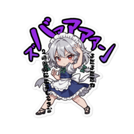 ステッカー - 160 x 160 (mm)(1)😎🔥東方Project 十六夜咲夜 〜覚悟のキメポーズ〜😎🔥 ⏳【人気投票 第5位】⏳ 刻(とき)を支配する、銀の静寂。十六夜咲夜、覚悟の「幻世 ザ・ワールド」ッ!!🔪🌌✨ 「あなたの時間も私のもの……」🕰️ その冷徹な宣告と共に、世界を停止させるほどの圧倒的重圧(プレッシャー)を放つ劇画的ポーズ‼️⚡️ 第21回東方Project人気投票でも圧倒的支持を誇る「十六夜咲夜」が、エレガンスを脱ぎ捨てた「覚悟」の姿でグッズ化だッ!!🧤✨ 背後に刻印された「ズバァァァン!」の衝撃。 銀髪をなびかせ、時空の歪みさえ感じさせるその立ち振る舞いは、まさに「完全で瀟洒な支配者」の帰還ッ‼️🔪⏳ スタイリッシュを極限まで研ぎ澄ませた、最高にハイなデザインを見逃すなッ!!😎🔥 【速度と美を愛する全てのライダー&ドライバーへ】 🏍️💨🚗💨 愛車のカウルに、リアウィンドウに、そしてスマホに。 時を止め、一瞬の閃光(フラッシュ)を永遠に刻む「銀の覚悟」をインストールしろッ‼️⚡️🌌 この商品はpixivFACTORYで作られた商品です。サンプル画像は完成イメージのため、実物と異なる場合があります。