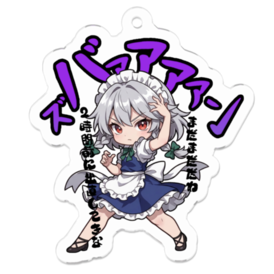 アクリルキーホルダー - 70 x 70 (mm)(1)😎🔥東方Project 十六夜咲夜 〜覚悟のキメポーズ〜😎🔥 ⏳【人気投票 第5位】⏳ 刻(とき)を支配する、銀の静寂。十六夜咲夜、覚悟の「幻世 ザ・ワールド」ッ!!🔪🌌✨ 「あなたの時間も私のもの……」🕰️ その冷徹な宣告と共に、世界を停止させるほどの圧倒的重圧(プレッシャー)を放つ劇画的ポーズ‼️⚡️ 第21回東方Project人気投票でも圧倒的支持を誇る「十六夜咲夜」が、エレガンスを脱ぎ捨てた「覚悟」の姿でグッズ化だッ!!🧤✨ 背後に刻印された「ズバァァァン!」の衝撃。 銀髪をなびかせ、時空の歪みさえ感じさせるその立ち振る舞いは、まさに「完全で瀟洒な支配者」の帰還ッ‼️🔪⏳ スタイリッシュを極限まで研ぎ澄ませた、最高にハイなデザインを見逃すなッ!!😎🔥 【速度と美を愛する全てのライダー&ドライバーへ】 🏍️💨🚗💨 愛車のカウルに、リアウィンドウに、そしてスマホに。 時を止め、一瞬の閃光(フラッシュ)を永遠に刻む「銀の覚悟」をインストールしろッ‼️⚡️🌌 この商品はpixivFACTORYで作られた商品です。サンプル画像は完成イメージのため、実物と異なる場合があります。