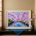 一点物 油絵 原画【春の目覚め ~水面に映る夢~】風景画 油彩画 青 アート 抽象画 モダンインテリア
