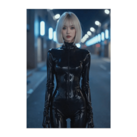 ポスター - B2この商品はpixivFACTORYで作られた商品です。サンプル画像は完成イメージのため、実物と異なる場合があります。 深夜の街を舞台にした近未来エージェントポスター。 艶のあるブラックラテックススーツに身を包んだクールな女性エージェントが、 静まり返った夜のストリートに立つ印象的なビジュアルです。 シネマティックなライティングと都市の光のボケが、 近未来SF映画のワンシーンのような雰囲気を演出します。 スタイリッシュでクールな世界観を楽しめる SFポスター作品です。