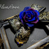 ご覧いただきましてありがとうございます こちらは薔薇をモチーフにした髪飾りです 青や紫のお色を主とした色合いで薔薇をモチーフに、つまみ細工の技法で リボン仕立てにいたしました ゴシック調のリボンは黒にゴールドの刺繍がほどこしてあるもので 幻想的なイメージで個性的なリボンです ドレスなどに合わせていただくと素敵かと思います ハーフアップした髪につけていただくと、とても素敵です ショートの方は、一度ヘアゴムやヘアピンなどで、とめて その上に差し込むようにしていただくと、よいです 4枚目のお写真はご参考にしてください (実際のサイズ感とは少し違います、ご了承ください) サイズ 横最大 約14センチ~15センチ センターの薔薇は約4.5センチ 縦幅 約9センチ コーム金具 10足 正絹羽二重生地使用 リボンの先端にもストーンを配置しました パーティーシーンなど普段使いからフォーマルまでご利用いただけます また、大きめのヘッドのドールにも利用いただけます コーム式ですので、つけたい場所にヘアピンをとめてからその上にコームを 差し込んでいただけると、おちつきます 他のサイトクリーマでも販売をいたしております 1点ものですので、ご購入前に必ず在庫の確認をメッセにてお願いいたします 5月23日、24日デザインフェスタ63にてつまみ細工のワークショップを行います ご興味のある方は是非お越しください 詳しくはArieruhome pageへ