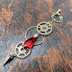 【3/20 アルトヴァリエで先行販売 後日BOOTHで通販予定】片耳イヤリング アシンメトリー ピアス穴不要 金属アレルギー対応 個性派アクセ 歯車 スチームパンク レッド