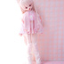 ・ 袖やパンツの横は起毛素材の布にベルベットリボンを縫い付けて柔らかい雰囲気にしました。 ・メインに使っているピンクのジャガード生地と起毛リブニット生地は韓国からの輸入生地です。 ・チャックを閉じた時に柄が左右で繋がるように裁断しました。 ・上着の左胸についている花はニードルパンチで刺繍しました。 ・立ち襟Tシャツの花の絵は布用絵の具で直接描きました。 その上からビーズを縫いつけています。光の下でキラ キラします。 ・今回は全体的にオーバーサイズでゆったりとした大きなシルエットを意識して仕立てました。花に囲まれて寝ころがる馬のイメージです。MDDのお洋服は馬っぽさをだすより可愛さを優先してプリーツスカートにしました。