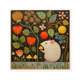 【ノスタルジック】ネズミと収穫の森 - 10cmアートステッカー