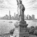 ① 《自由の女神 ― Liberty in Structure》 ニューヨーク湾に佇む Statue of Liberty を、サイド構図から精密なペン画で描いた一作。 力強く掲げられたトーチと衣の襞を、細密なハッチングによって立体的に表現し、石造台座の重厚感と対比させています。 背後にはマンハッタンのスカイラインを緻密に描き込み、歴史的象徴と現代都市の共存を一枚の画面に凝縮。光と影の階調のみで構成されたモノクロームは、「自由」という理念を時間軸を超えた普遍的価値として提示します。 クラシカルでありながら現代的。空間構造を楽しめる建築的アート作品です。 ⸻ ② 《タイムズスクエア ― Urban Density》 世界有数の商業空間 Times Square を中央構図で捉えた大作。 無数のビルボード、群衆、車両、遠近法で収束するストリートラインを、極細線の積層によって描写しています。 情報過多の都市風景をあえてモノクロで再構築することで、広告の色彩を削ぎ落とし、「構造」と「流動性」そのものを抽出。 階段から広がる視線誘導は、都市が持つエネルギーの中心へと鑑賞者を導きます。 商業性と芸術性が交差する、ダイナミックな都市アート作品です。 ⸻ ③ 《ハリウッド ― Landscape of Dream》 ロサンゼルスの丘陵地帯に広がる Hollywood Sign をサイドから広大に描写。 手前の荒野植物や岩肌を精密に描き込み、遠景に都市のスカイラインを霞ませることで、空間の奥行きを強調しています。 丘を横断する小道と歩く人影がスケール感を際立たせ、「夢を目指す道」という象徴的な物語性を付与。 巨大なサインは単なるランドマークではなく、アメリカン・ドリームの視覚的記号として再構成されています。 自然と都市、現実と理想が交錯する静謐な一枚です。