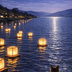 【iPhone壁紙】 青い夜|灯籠流しと猫|(高画質・透かしなし)|Moonlit Lantern Floating Cat|Aoya Cat Scenes 08