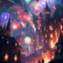 Fantasy Fireworks Castle Phone Wallpaper | Magical Night Lock Screen | 4K Included