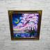 油絵 原画「月光に眠る夜桜」|桜の絵 インテリア アート 癒やしの夜景 壁掛け