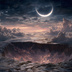幻想的な空と雲の背景素材【高画質10枚】Vol.112〈三日月編〉