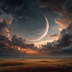 幻想的な空と雲の背景素材【高画質10枚】Vol.120〈三日月編〉