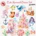 人魚クリップアート64点|マーメイド・海のイラスト素材|PNG背景透過|商用利用OK