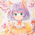 耳っ子ちゃんと桜 🦊🐻🐰🐱🌸 直筆イラスト 1/4サイズ色紙