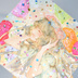 ご覧いただきありがとうございます。 出品者本人が描いた、直筆一点物のアナログイラストです。 過去に何度も描いている、思い出のあるキャラクターです。 無邪気で天真爛漫、いつも笑顔で楽しそうにしている女の子をイメージしています。 暖かくて幸せな雰囲気を詰め込みました。 ふと飾られたこの絵を見て、心が穏やかになればいいなと思いながら描きました。 ひし形のイラストとして描きましたが、正方形としても楽しんでいただけます! ウチハク、クサカベシャインパール、金インクを使用した部分は、角度によってキラキラと輝きます。 (スキャン画像では再現しきれない部分があります) ◆内容◆ 透明水彩 ウチハク クサカベシャインパール ネイル用デコレーション ミラーネイル 金のきらめき(金インク) ホワイト メディウム アルシュ水彩紙(縦約18㎝×横約18㎝に自己裁断しています。) ■ 作品について 裏面右側にサイン判子あり SAMPLE文字は入っていません。 手描き作品のため、色ムラ・はみ出し等がある場合があります。 スキャン画像と実物で色味に差が出る場合があります 。 カメラ撮影でできるかぎり実物の色味に近づけています。 ■ 保管・取り扱いについて メディウムの性質上、高温多湿ではベタつく場合があります。 クッキングシートを挟んで梱包しますので、保管時にもご使用ください。 額装の際はガラス、アクリル面が触れない額をお選びください。 ■ 注意事項 著作権は放棄しておりません。 二次使用はご遠慮ください。 ペットを飼っています。 同梱発送、発送方法変更、対応可能です。 気になる点がありましたらお気軽にご質問ください!