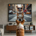 夕暮れ時の柔らかな琥珀色の光が差し込む大都会。 その交差点の真ん中で、サングラスをかけた一匹の犬が堂々と座っています。 まるで映画の主人公のようなクールな佇まいと、 背景に広がる街の光のボケ感が、 日常の中に非日常のスパイスを与えてくれます。 お部屋に飾るだけで、洗練された都会的でポップなアート空間を演出。 ユーモアとスタイリッシュさを兼ね備えた、 特別なインテリアアイテムとしてお楽しみください。
