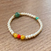 グリーンアベンチュリン & パール ヴィンテージ カラービーズ ブレスレット