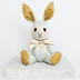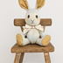 先染め布一色の体に耳裏の黄色が映える配色のウサギさん🐰 穏やかな表情とオレンジのチークがカントリー調な子です。