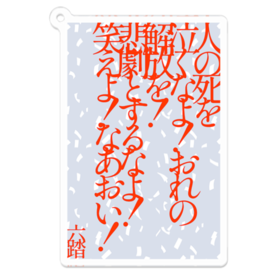 アクリルキーホルダー - 70 x 70 (mm)※この商品はpixivFACTORYで作られた商品です。サンプル画像は完成イメージのため、実物と異なる場合があります。 短歌「人の死を泣くなよ!おれの解放を!悲劇とするなよ!笑えよ!なあおい!」のアクリルキーホルダーです。