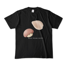 カラーTシャツ - XL - ブラック (濃色)深い静けさが黒の中に沈むように広がる black wild bloom。 Soft beans × deep calm がミニマルアートのように浮かび上がり、 quiet, minimal, deep mood をまとえる1枚。 大人の余白が美しく映える“深い静”のTシャツです。 写真の色味は、光の当たり方や画面環境により実物と少し異なる場合があります。