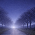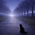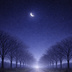 【iPhone壁紙】青い夜|月へ続く並木道と猫|Moonlit Path|Aoya Cat Scenes No.21