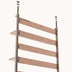 ブラックスチールとウォールナットを基調とした、 棚やフックがついている突っ張り棒式のパーテーションです。 棚に小物を飾ったり、単に部屋を区切るために使ったりできます。 フックは七個、棚は3つ付属しています。