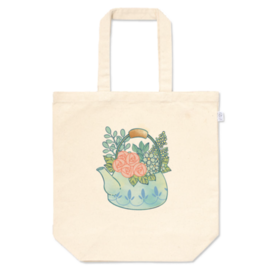 トートバッグ - M - プリント面積中Procreateで描いた、 花のやかんをモチーフにしたトートバッグです。 日常にそっとなじむような、 やわらかな雰囲気に仕上げました。 この商品はpixivFACTORYで作られた商品です。サンプル画像は完成イメージのため、実物と異なる場合があります。