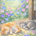Two Sleeping Cats & Morning Glory Garden – Commercial Use Illustration (A4 PNG Download)
