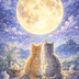 Moonlit Dream with Two Cats – Commercial Use Illustration (A4 PNG Download)