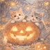 Two Cats & Halloween Night – Cute Autumn Illustration (Commercial Use)