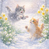 【Commercial Use】Two Playful Cats in Snowdrops Garden