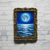 油絵 原画『海を照らす蒼き満月』ミニ絵画 | 月 夜空 風景画 インテリア アート