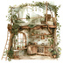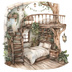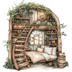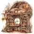 【商用利用可】妖精ツリーハウス室内(水彩フェアリーインテリア)クリップアート20点セット|高解像度・透過PNG|ファンタジー・コラージュ・ジャンクジャーナル素材|即ダウンロード